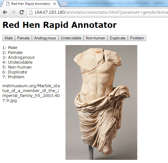 The Red Hen Rapid Annotator is designed to enable you to go through a large number of images in a very short period of time and to to get you started with minimal training. Nonetheless, it is vital that you read carefully through this document.
